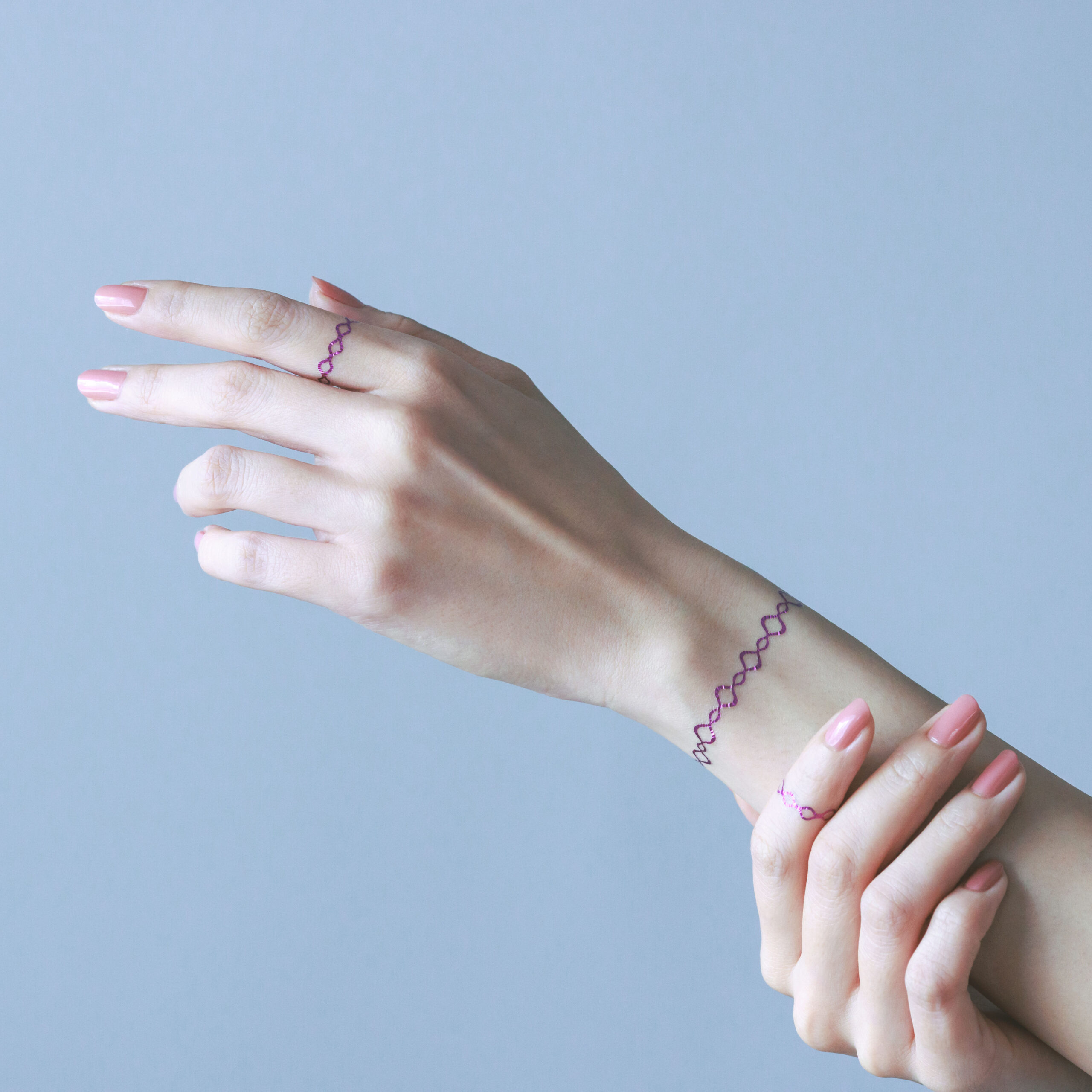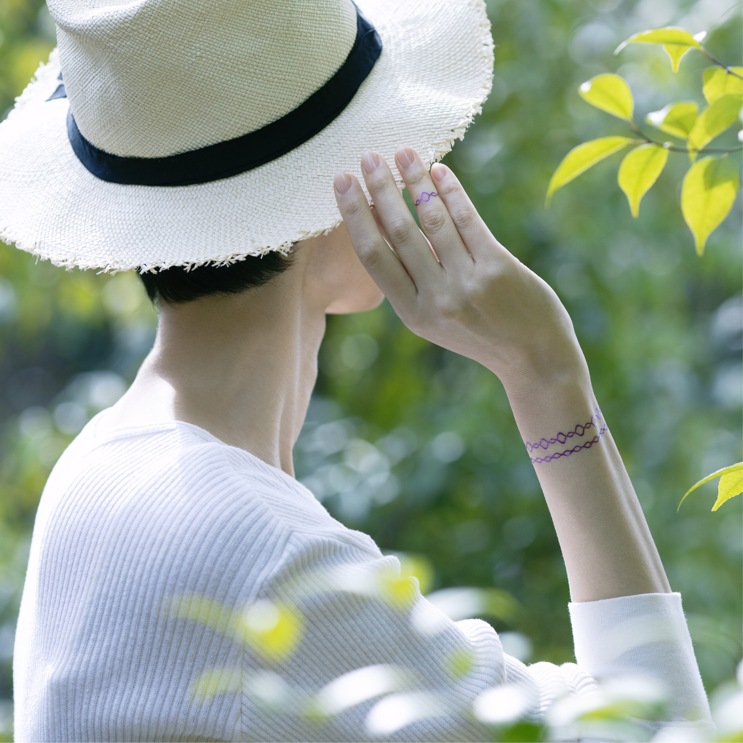 - 約3分間乾燥させてください。3〜5日程度お楽しみ頂けます(個人差がございます)。落とす場合にはアルコールやベビーオイルでやさしく拭き取ります。