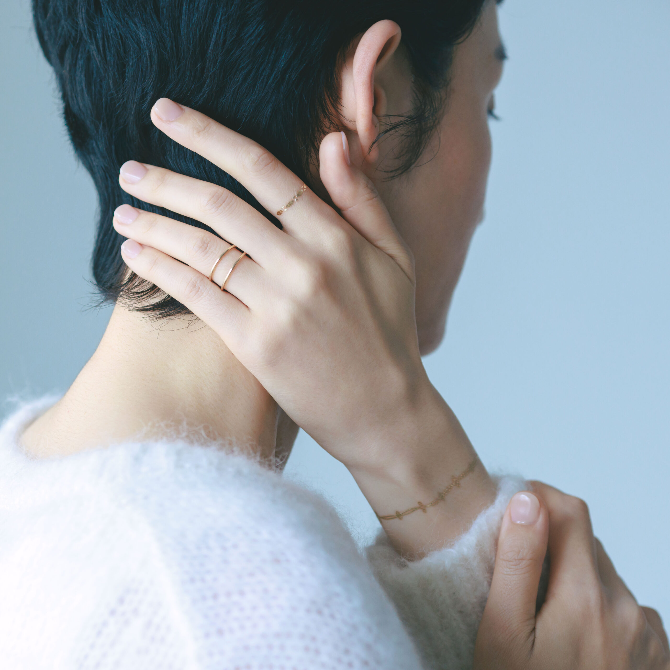 箔と水のアクセサリー HAQUAは、繊細でエレガントなデザインが特徴で、身につけると繊細なきらめきを放ちます。